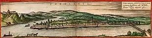 In 1249–1254, Koblenz was given new walls by Archbishop Arnold II of Isenburg; and it was partly to overawe the turbulent citizens that successive archbishops built and strengthened the fortress of Ehrenbreitstein that still dominates the city.