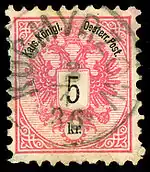 Austria KK 5 kreuzer stamp, cancelled at KOCMYRZOW in 1886