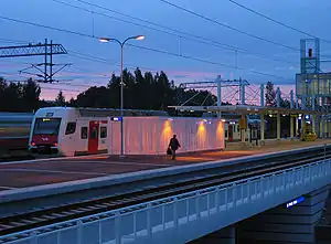 Koivukylä railway station (Finnish: Koivukylän rautatieasema; Swedish: Björkby station) is a Helsinki commuter rail station located in the district of Koivukylä in the city of Vantaa, Finland. It is located approximately 19 kilometres (12 mi) from Helsinki Central railway station.
