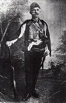 Rašić was born in Niş (Niš), part of the Sanjak of Niš, Ottoman Empire (modern Serbia), in ca. 1839.[2] He is said to have been lively by nature and combative. A merchant by profession, he had good connections in the Principality of Serbia and Niš Eyalet. In 1858 he entered Serbia, with the intent to go to Russia, however, the dynastical change made him change his mind.[3] While at Negotin, he heard that Miloš Obrenović would arrive, so he waited for him, and then the two spoke. Rašić, as a respectable Niš citizen, was now sent secretly by the Obrenović government to instigate revolt in the Niš area and beyond against the Ottomans. The planned operation was not implemented in 1860.[4] It proved a long process, and Kole Rašić sought, from then on, the liberation of Niš and then the other regions under Ottoman rule.