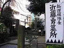 Following his trial at which he was declared guilty on April 30, 1868, Kondō was beheaded by the executioner Yokokura Kisoji at the Itabashi execution grounds on May 17, 1868.[26] His execution was also witnessed by his nephew Miyagawa Yūgorō. Kondō's head was put on a pike for public display.