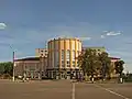 In 1926, Korosten received city status.[16] In October 1926, with the permission of the authorities and under the supervision of the OGPU, a conference of the rabbis of the Volyn province was held in Korosten, which actually had an all-Ukrainian, and partly all-Union character; which adopted a decree on counteracting atheistic propaganda.[17] In 1936, the city had a population 28,000, a porcelain factory, a metalworking factory "Oktyabrskaya Kuznitsa", car repair shops and a municipal power plant with a capacity of 20 kW operated here.[18]