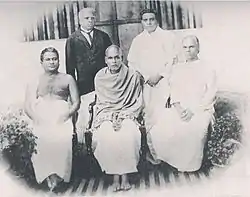 Narayana Guru's influence led Asan to spiritual pursuits and he spent some time at a local temple, in prayers and teaching Sanskrit.[2] Soon, he joined Guru at his Aruvippuram hermitage where he was known as Chinnaswami (young ascetic). In 1895, he moved to Bangalore and studied for law, staying with Padmanabhan Palpu. He stayed there only until 1898 as Palpu went to England and a plague epidemic spread over Bangalore and Asan spent the next few months in Madras before proceeding to Calcutta to continue his Sanskrit studies.[3] At Calcutta, he studied at Tarka sastra at the Central Hindu College, studying English simultaneously and also got involved with the Indian Renaissance, but his stay was again cut short due to plague epidemic.[4][5] He returned to Aruvippuram in 1900.[3]