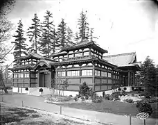Kushibiki's major project for 1904 was the Louisiana Purchase Exposition held in St. Louis from April 30 to December 1, 1904. The St. Louis Exposition received unprecedented support from the Japanese government: $400,000, plus $50,000 from the Japanese colonial government of Formosa, and over $250,000 in Japanese commercial and regional government investments. A large garden featured a replica of Kyoto's famous Kinkakuji.[22]