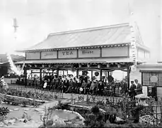 For the Atlanta Cotton States and International Exposition, September to December 1895, Japanese commissioner M. Fujisawa requested and received a place off the Midway for a "high class" attraction.[7] Japan was winning the Sino-Japanese War and hoped for international recognition. But the stratagem failed. "The Japanese Village, though located in another part of the park, may be considered a part of the anthropological display of the Midway group," wrote a local historian.[8]