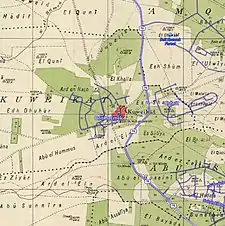 In the late Ottoman period, Kuwaykat was named Chiouwe chiateh on the French map Pierre Jacotin made of the area during Napoleon's invasion of Egypt and Syria in 1799.[11] In 1875 Victor Guérin visited, and found the village surrounded with gardens planted with fig and olive trees, and with an ancient well. He further noted that the village was mentioned in Crusader sources.[12] In 1881 Kuwaykat was described by the PEF's Survey of Western Palestine as being built of stone and situated at the foot of hills. The roughly 300 Muslim residents cultivated olives.[13] In 1887, an elementary school was built in the village. In addition, the village had a mosque and a shrine for the Druze religious leader, Shaykh Aby Muhammad al-Qurayshi.[6]