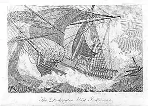34 kilometres (21 mi) away, shortly after midnight on 17 July 1755, the East Indiaman Doddington struck the south-eastern corner of the low-lying Bird Island (or Chaos Island as it was then known).[3] She went down within 20 minutes, with only 23 of the 270 passengers and crew surviving.[4] They were marooned on the island for seven months, before they managed to make their way to India on a sloop they built on the island.