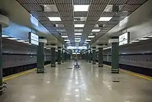 For the project to come into life, 660,400 m3 (23,321,805.9 cu ft) of concrete (reinforced as well as traditional) were poured, additional 7,300 m2 (78,576.5 sq ft) of granite and marble were used to decorate the station.[7]