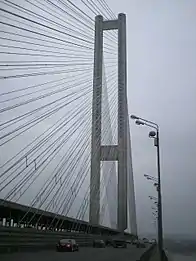 Even though Ukraine met severe economical problems at the dawn of independence, the momentum of subway construction was not at all lost: on 30 December 1991, "Druzhby narodiv" and "Vydubychi" stations were opened. "Pecherska" station was not opened then, but on 27 December 1997, since its construction had to be frozen due to hydrotechnical problems.[30] In that way, the line reached Dnieper, which it crossed exactly a year later via the Southern Bridge, with the creation of "Slavutych" and "Osokorky" stations. Initially, the metro bridge (not to be mistaken with Metro Bridge to the north) was intended to be covered by an aluminium construction, which was open from the sides, but it revealed it was useless when it comes to snow and rain protection - the reason the whole construction started. That is why a third of the bridge section is not covered at all, as of 5 July 2017.[13]