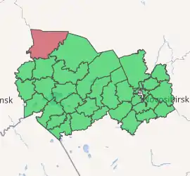 Kyshtovsky District (Russian: Кыштовский райо́н) is an administrative[1] and municipal[5] district (raion), one of the thirty in Novosibirsk Oblast, Russia. It is located in the northwest of the oblast. The area of the district is 11,101 square kilometers (4,286 sq mi).[2] Its administrative center is the rural locality (a selo) of Kyshtovka.[1] Population: 12,399 (2010 Census);[3] 16,427 (2002 Census);[7] 19,081 (1989 Census).[8] The population of Kyshtovka accounts for 42.6% of the district's total population.[3]