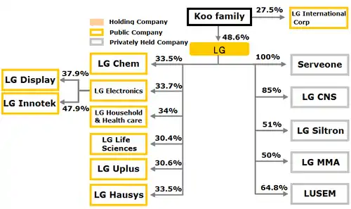 In July 2018, it was announced that Koo Kwang-mo, the adopted son of Koo Bon-moo, will be the new CEO. Koo Kwang-mo is the nephew and adopted son of Koo Bon-moo. Koo Bon-moo adopted his nephew in 2004, after losing his only son in 1994.[5] citing "first son-only succession rule".[6] Koo Bon-moo died of a brain tumor on 20 May 2018.[7]
