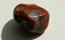 The Lake Superior agate was selected because the agate reflects many aspects of Minnesota. It was formed during lava eruptions that occurred in Minnesota about a billion years ago.[1] The stone's predominant red color comes from iron, a major Minnesota industrial mineral found extensively throughout the Iron Range region. Finally, the Lake Superior agate can be found in many regions of Minnesota as it was distributed by glacial movement across Minnesota 10,000 to 15,000 years ago.