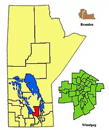 There are no major urban centres in the riding. Communities include Argyle, Balmoral, Rosser, Gunton, Stonewall, Stony Mountain, Teulon, Warren, Woodlands and Inwood.