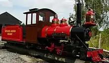 A dual gauge 10 1⁄4 in (260 mm) / 7 1⁄4 in (184 mm) light railway was established in the park in 1992, originally as a temporary layout.[3] A more permanent track was laid down in 1993, as the railway company was granted a three-year lease.[3] Five years later, a longer lease was negotiated and construction began on the two stations, Eastleigh Parkway and Monks Brook.[3] They were opened in 1999, although further work on the layout itself was carried out in 2000.[3] A tunnel was added in 2003, and Eastleigh Parkway station was extended in 2005 with the addition of a café and shop.[3]