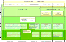 Courts in Ukraine are divided by jurisdiction including constitutional courts, general (criminal and civil jurisdiction) courts, economic courts, and administrative courts. There is also the Constitutional Court of Ukraine, the Supreme Court of Ukraine, Appellate Courts (in every Region oblast of Ukraine), and District Courts in every city, town, or raion (which is a subdivision of oblast). As well, there is the High Administrative Court of Ukraine, Local Administrative Courts in every administrative district, usually oblast, the High Commercial Court of Ukraine, Local Commercial Courts in every administrative district, usually oblast, and Military court in every Appellate Court in every regional oblast. There is also the Tertiary Court created in accordance to the law "On Tertiary Court" and registered in Ministry of Justice of Ukraine.