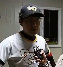 Lee Hwi-jae (born Lee Young-jae on December 29, 1972) is a South Korean TV presenter, comedian, actor, and singer.[5] Lee studied theater at the Seoul Institute of the Arts, then made his TV debut in 1992 as a comedian after working as a floor director for MBC's entertainment program Sunday, Sunday Night. He shot to stardom in the program Life Theater. Since then, he has expanded his career to hosting variety shows such as Sang Sang Plus, Sponge and Quiz to Change the World.[4] He was the third highest-paid entertainer at MBC in 2008, earning ₩574.5 million.[6]
