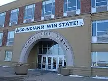 Lemont High School's teams had been known as the Indians until the mid-1960s, when an athletic director christened the school with the name Injuns to distinguish it from the many others using Native American names as their team name.[13] However, many viewed the name Injuns as a racial slur. In the early 2000s, the Illinois Native American Bar Association notified the high school of its disapproval of the Injuns name. By August 2004, the District 210 board voted to choose a new mascot with community input.[14]