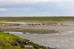 ![]() Reindeer herd crossing the Bolshaya Tumatskaya channel within the reserve (2014) | |