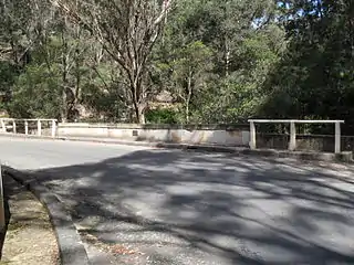 Mitchell's Pass continued to be used, however, and by 1975 it was plain that substantial works were necessary to secure the safety of Lennox Bridge. Restoration works took place in 1976.[4] The bridge served the main route to the Blue Mountains for 93 years until 1926, when the Great Western Highway was re-routed via the Knapsack Viaduct.[10] It was closed in 1967 but later strengthened and repaired with an internal concrete structure and it re-opened in 1982.[1][9][11]
