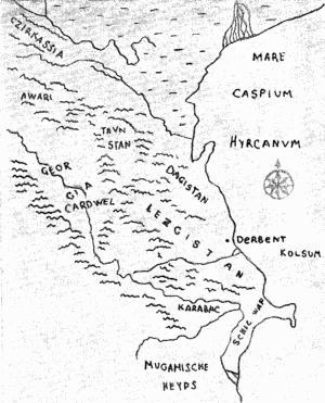 While ancient Greek historians, including Herodotus, Strabo, and Pliny the Elder, referred to Legoi people who inhabited Caucasian Albania, Arab historians of 9-10th centuries mention the kingdom of Lakz in present-day southern Dagestan.[3] Al Masoudi referred to inhabitants of this area as Lakzams (Lezgins),[4] who defended Shirvan against invaders from the north.[5]