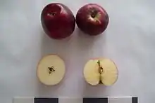 Liberty is a hybrid apple cultivar developed by the New York State Agricultural Experiment Station. It was a seedling produced in 1955 from pollinating 'Macoun' from 'Purdue 54-12' for the sake of acquiring Malus floribunda disease resistances. It was first released to the public in 1978.[1]