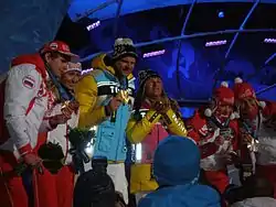 ![]() Medalists at the visually impaired biathlon events during the 2010 Winter Paralympics including Liubov Vasilieva and fellow Russian Paralympic Nordic skier Mikhalina Lysova | |||||||||||||||||||||||||||||||||||||||||