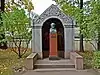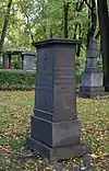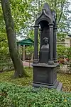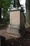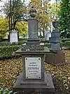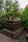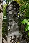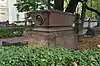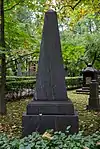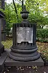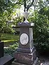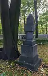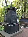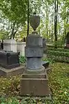 Over time the cemetery became a popular and prestigious burial ground for those of many areas of society. The wealthy merchant A.I. Kosikovsky was buried under a monumental sarcophagus on a high pedestal surmounted by a canopy on eight fluted columns.[4] Opposite it stood a similarly grand monument to the statesman Pavel Demidov, which has since been lost.[4] In 1857 the remains of the composer Mikhail Glinka were returned from Berlin and buried in the cemetery, with a grand monument erected two years later to the design of architect I. I. Gornostayev, with sculptures by Nikolai Laveretsky.[4][9] On 1 February 1881 the author Fyodor Dostoevsky was buried in the cemetery, with a similarly large monument.[4][10] During the 1880s composers Modest Mussorgsky and Alexander Borodin were buried in the northern part of the grounds, with Pyotr Ilyich Tchaikovsky following in 1891.[4][11][12][13]