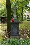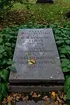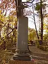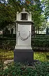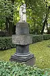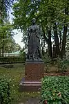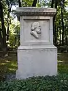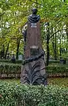 During the early Soviet period a number of monuments were stolen or destroyed. The cemetery was officially closed for burials in 1927, though they continued until 1932, and it was decided to turn it into a necropolis museum, displaying historically and artistically significant graves.[2][1] Alongside this was concept of gathering together the graves of the friends and contemporaries of Alexander Pushkin for the 1937 centenary commemorations of the poet's death. The architectural and planning department of Lensovet, the city administration, was tasked with creating a memorial park project.[2] Plans were drawn up by architects E.N. Sandler and E.K. Reimers, with further input from the city's chief architect L.A. Ilyin.[2] The Funeral Affair Trust was established to run the necropolis museum, including removing abandoned gravestones for sale as building materials.[4] The reconstruction radically altered the nature and appearance of the Tikhvin cemetery. With the intention being to create an "artists' necropolis", graves of those from other sections of society were removed. Fewer than a hundred of the original monuments were preserved.[2] Meanwhile the remains of prominent artists, sculptors, composers and musicians were reburied in the cemetery. Among them were personal friends of Pushkin, including Konstantin Danzas, Anton Delvig, and Fyodor Matyushkin.[2]