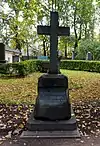 ![]() | Peter Clodt von Jürgensburg | 1805 | 1867 | Sculptor, Horse Tamers on the Anichkov Bridge, statuary of the Narva Triumphal Gate, quadriga above the portico of the Bolshoi Theatre, Monument to Nicholas I. Originally buried in the Smolensky Lutheran Cemetery, transferred to the Tikhvin in 1936. Monument is not original, and dates from the 1840s. | ![]() | [78] |