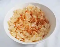This is a list of cabbage dishes and foods. Cabbage (Brassica oleracea or variants) is a leafy green or purple biennial plant, grown as an annual vegetable crop for its dense-leaved heads. Cabbage heads generally range from 0.5 to 4 kilograms (1 to 9 lb), and can be green, purple and white. Smooth-leafed firm-headed green cabbages are the most common, with smooth-leafed red and crinkle-leafed savoy cabbages of both colors seen more rarely. Cabbages are prepared in many different ways for eating. They can be pickled, fermented for dishes such as sauerkraut, steamed, stewed, sautéed, braised, or eaten raw. Cabbage is a good source of vitamin K, vitamin C and dietary fiber. Contaminated cabbage has been linked to cases of food-borne illness in humans.