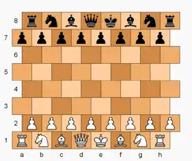 - Doublewide chess: Two regular chessboards are connected for a 16×8 play surface. Each player plays with two complete sets of chess pieces.[16]