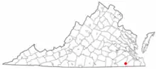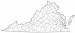 | Virginia Beach | 810 | N/A | 1963 | Founded 1906 around existing community of Seatack. Incorporated as City in 1963 from Princess Anne County (extinct)[11] | The city's coastal location | 447,021 | 248 sq mi (642 km2) | ![]() |