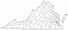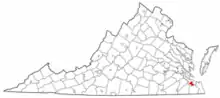 | Manassas Park | 685 | N/A | 1975 | From Prince William County | Manassas Gap Railroad and Manassas National Battlefield Park | 14,273 | 2.5 sq mi (6 km2) | ![]() |