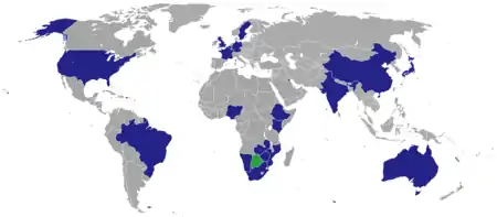 Countries hosting a diplomatic missions of Botswana