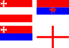 ![]() | theocratical rule of Petrović-Njegoš dynasty | Banner of the Prince-bishops of Montenegro and Metropolitans of Cetinje from House of Petrović | Orthodox red cross in a white field with a red border. Represents the highly Christian virtue of subjected peoples and the desire to fight against invading Islam. Adopted during the Great Turkish War at the end of the 17th century. |