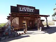 This is a list of historic properties in the mining town of Goldfield, Arizona. The town was originally known as Goldfield, it was later renamed Youngberg and once again was named Goldfield by the current owners.[1] The list includes a photographic gallery of some of the town's historic structures which were either restored or rebuilt. The town was founded in 1893, after the discovery of gold in the surrounding area of the Superstition Mountains. The town was abandoned twice by its residents, after the mine veins faulted. The land where the town is located was purchased by a private investor and is now a tourist attraction. Goldfield's Superstition Narrow Gauge Railroad is the only 3 ft (914 mm) narrow-gauge railroad in operation in Arizona. Other attractions include re-enactments of gunfights on the Main Street of the town.