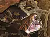 | Perhaps no other invasive species has attracted as much media attention as Burmese pythons in Florida, particularly after spectacular photographs and eyewitness accounts of struggles between native alligators and these snakes were released. Burmese pythons have voracious appetites and have been found to eat animals ranging in size from wrens to white-tailed deer. A study published in 2011 found some mammal populations have dropped over 90 percent in areas populated by pythons. Burmese pythons share the top of the food chain in the Everglades with alligators and prey on 39 endangered species and 41 additional rare species. They continue to be sold as pets; around 6,000 pythons were imported into Miami from 2003 to 2005. They are removed immediately from Everglades National Park; as of 2007, national park staff report extracting a total of 600 pythons. Another 300 were captured in 2008 alone. A park biologist estimated that between 5,000 and 180,000 Burmese pythons live in wilderness areas in South Florida.[5][81][82][83] | |||