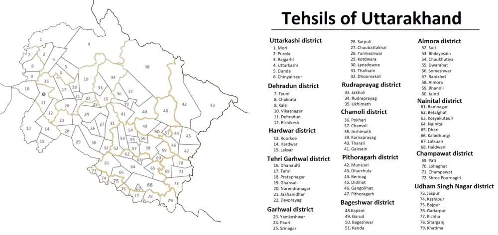 List of tehsils of Uttarakhand