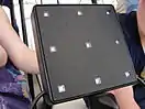 The stadium's 80,000 seats had a black-and-white 'fragment' theme that matched the overall branding design used by LOCOG for London 2012. The lines all centred on the finish line in the stadium.[25] The seats were made in Luton and were fitted between May and December 2010.[34] During the Games, the Stadium's grandstands contained a lighting system developed by Tait Technologies that allowed them to function as a giant video screen. Individual "paddles" containing nine LED pixels each were installed between each seat of the stadium, which were controlled via a central system to display video content wrapped around the stadium. The system was primarily intended for use during the ceremonies of the Olympics and Paralympics.