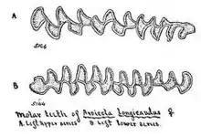The genitalia of the long-tailed vole have been described. The baculum has broad and straight proximal bone. It is similar in structure to that of the meadow vole, but with different proportions. The basal shaft is dumb-bell shaped in cross section and tapers to a blunt point at the end. The shaft is broad in dimension and connects via cartilaginous linkages to three lateral segments. The glans penis has a dorsal lobe elevated above a ventral rim. The rim has spiny fingerlike processes, but not the dorsal lobe.[9] An rod shaped os clitoridis may be present, in front of the urethra.[10]