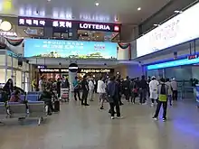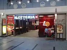 Lotteria is a chain of fast-food restaurants in East Asia that grew out of its first shop in Tokyo, Japan in September 1972. Taking its name from its parent company, Lotte Corporation, it currently has franchises in Japan, South Korea, Indonesia, Vietnam, Cambodia, Laos, and Myanmar.[1] The origin of the name is a combination of corporate names Lotte and Cafeteria.