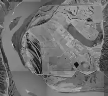 The main entrance is at the terminus of Louisiana Highway 66, a road described by Wolfe and Lornell as "a winding, often muddy state road."[21] From St. Francisville one would travel about 2 miles (3.2 km) north along U.S. Highway 61, turn left at Louisiana 66, and travel on that road for 20 miles (32 km) until it dead ends at Angola's front gate.[56] The Angola Ferry provides a ferry service between Angola and a point in unincorporated Pointe Coupee Parish. The ferry is open only to employees except during special events, when members of the general public may use it.[57]