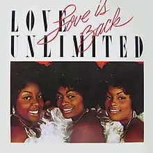Love Is Back is the fifth studio album by Love Unlimited. The album starts with the track "I'm So Glad That I'm a Woman", an R&B song considered by many a hymn to women, written by Barry White (creator of the group), Frank Wilson and Paul Politi. Three tracks entered the charts: "I'm So Glad That I'm a Woman", "High Steppin', Hip Dressin' Fella (You Got It Together)" and "If You Want Me, Say It" but unfortunately all three songs didn't get to a high position because of promotion problems.