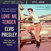 Instead of a full long-playing album soundtrack, for Love Me Tender the four songs appearing in the film were released as an extended-play or E.P. seven-inch 45 RPM record on RCA Victor, Love Me Tender, catalog EPA 4006, during November 1956.[1]