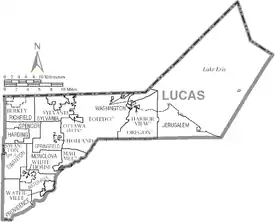 Lucas County is a county located in the northwestern part of the U.S. state of Ohio. It is bordered to the east by Lake Erie, and to the southeast by the Maumee River, which runs to the lake. As of the 2010 census, the population was 441,815.[2] Its county seat is Toledo, located at the mouth of the Maumee River on the lake.[3] The county was named for Robert Lucas, 12th governor of Ohio, in 1835 during his second term.[4] Its establishment provoked the Toledo War conflict with the Michigan Territory, which claimed some of its area.