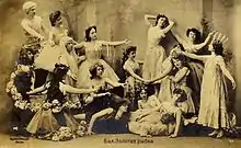 It was Saint-Léon who commissioned Minkus's first score for a full-length Grand Ballet, the three-act La Flamme d′amour, ou La Salamandre (The Flame of Love, or The Salamander), which the Ballet Master produced especially for the renowned Russian Prima ballerina Marfa Muravieva. The premiere on 24 November [O.S. 12 November] 1863 was a great success for the ballet company of the Bolshoi Theatre. Saint-Léon subsequently mounted the work in St. Petersburg for the Imperial Ballet in an elaborated staging for the benefit performance of Muravieva under the title Fiametta, ou L′amour du Diable (Fiametta, or The Love of the Devil). This version was first performed on 25 February [O.S. 13 February] 1864 at the Imperial Bolshoi Kamenny Theatre. Minkus later accompanied Saint-Léon to mount this work in a new staging for the ballerina Muravieva at the Théâtre Impérial de l'Opéra in Paris. For this staging the ballet's title was changed again as Néméa, ou L′Amour vengé (Néméa, or The Avenged Love).[3] At that time, ballets were performed at the Paris Opéra only as diversions during the intermissions of full-length operas, and as such Saint-Léon's ballet was reduced to two-acts. The first performance took place on 11 July 1864 with an audience that included the Empress Eugénie. Featured along with Muravieva in the title role of Néméa was the celebrated Premier danseur Louis Mérante in the role of Count Molder and the ballerina Eugénie Fiocre in the role of Cupid. Minkus's score was praised by the critics of day, among them Théophile Gautier, who found the music be filled with a " .. haunting, dreamy quality. The music for the dances were filled with sparkling melodies and infectious rhythms."[3] Néméa, ou L′Amour vengé was retained for fifty-three performances in the Opéra's repertory until 1871.[3] Saint-Léon also mounted the work for the ballet of the Teatro Comunale in Trieste, where it premiered on 15 March 1868 as Nascita della Fiamma d′Amore (Birth of the Flame of Love).[4] The change of titles of this work has caused much confusion among historians, many of whom have claimed that each of these productions were completely different works altogether.