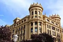 The Lezama Leguizamóns are not counted among the very top elite of Biscay industrial tycoons,[64] formed by the Ybarra, Martínez Rivas, Chávarri, Sota and Echevarrieta families;[65] however, they are listed as members of the emergent Basque oligarchy;[66] their name repeatedly comes up in history of Biscay industrialization[67] and their companies are listed among the most important ones in Bilbao in the first decades of the 20th century.[68] Their wealth and position was demonstrated by two buildings: Casa Lezama-Leguizamón in the downtown Bilbao, home to numerous corporate and other institutions,[69] and Palacio Lezama-Leguizamón, the family residential estate in Getxo. Both are considered iconic examples of Biscay architecture, made possible by fortunes of the new industrial and financial oligarchy.[70]
