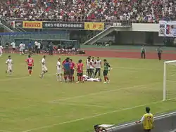 Henan Songshan Longmen Football Club (Chinese: 河南嵩山龙门), previously known as Henan Jianye Football Club (Chinese: 河南建业), is a professional football club that currently participates in the Chinese Super League under licence from the Chinese Football Association (CFA). The team is based in Zhengzhou (Chinese: 郑州市), in the province of Henan (Chinese: 河南省) and their home stadium is the Zhengzhou Hanghai Stadium that has a seating capacity of 29,860. Their owners are the Jianye Residential Group (China) Co., Ltd., which is part of the Central China Real Estate Limited. Their name refers to Jianye, a former name of the ancient city of Jiankang.[2]