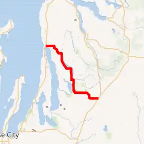 M-88 starts in the community of Eastport at an intersection four blocks east of the Grand Traverse Bay of Lake Michigan next to Barnes County Park. From its start, it runs east along the northern end of Torch Lake. M-88 zig-zags south and east along Scenic Highway to the community of Central Lake. In Central Lake it runs south along Main Street, following the western shore of Intermediate Lake.[3][4] South of Intermediate Lake, M-88 crosses the Intermediate River on a historic designation-eligible Depression-era bridge along Bridge Street in Bellaire.[5] This section of M-88 is just west of the Antrim County Airport before the highway turns east on Cayuga Street in downtown and south on Division Street.[3] The Bellaire section of the trunkline is the location of the highest traffic levels along the highway. The Michigan Department of Transportation (MDOT) measures the annual average daily traffic (AADT) in traffic surveys. The 2007 survey showed that 5,200 vehicles used the section of roadway on the average day in Bellaire.[6]