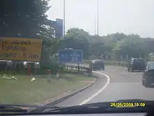 The short section between Junctions 27 and 29 was built between 1967 and 1969, by Devon County Council, as the A38 Cullompton Bypass, with the intention that it should become part of the M5.[2] The termini for this section have since been removed, although part of the southern terminal roundabout is now used as an emergency access.[6] The section was developed to motorway standards, and incorporated into the M5 in 1975.[2]